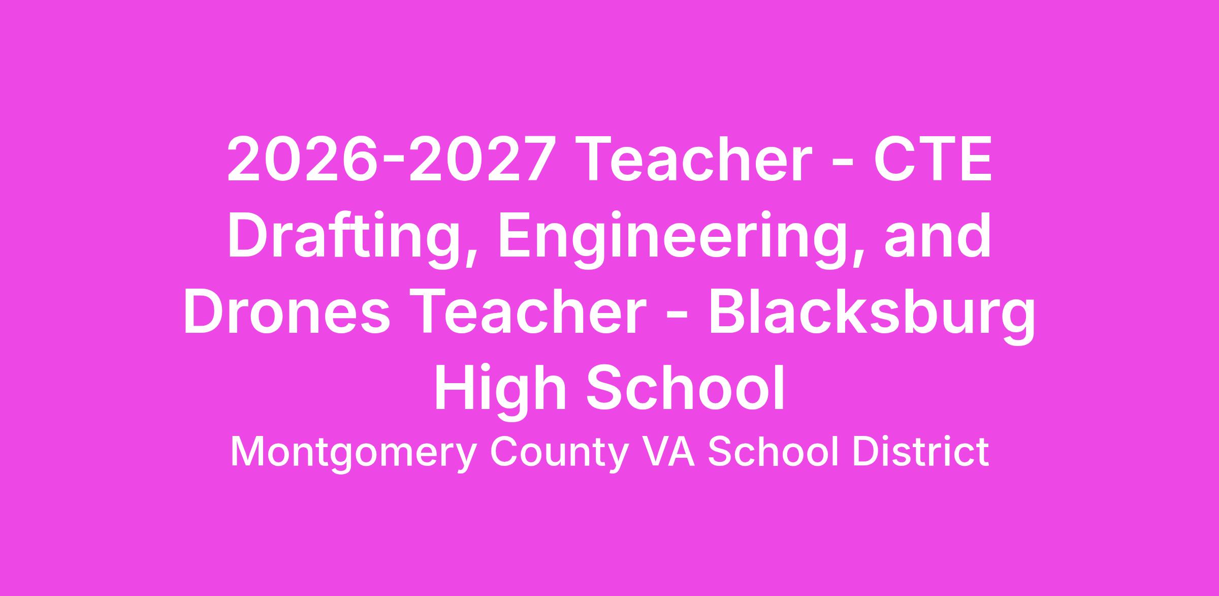 Are you passionate about teaching in Career and Technical Education? Montgomery County Public Schools in Virginia is now accepting applications for a Career and Technical Education (CTE) Drafting, Engineering, and Drones teacher position that is available at Blacksburg High School for SY 2026-2027. This position requires the teaching of dual enrollment coursework.