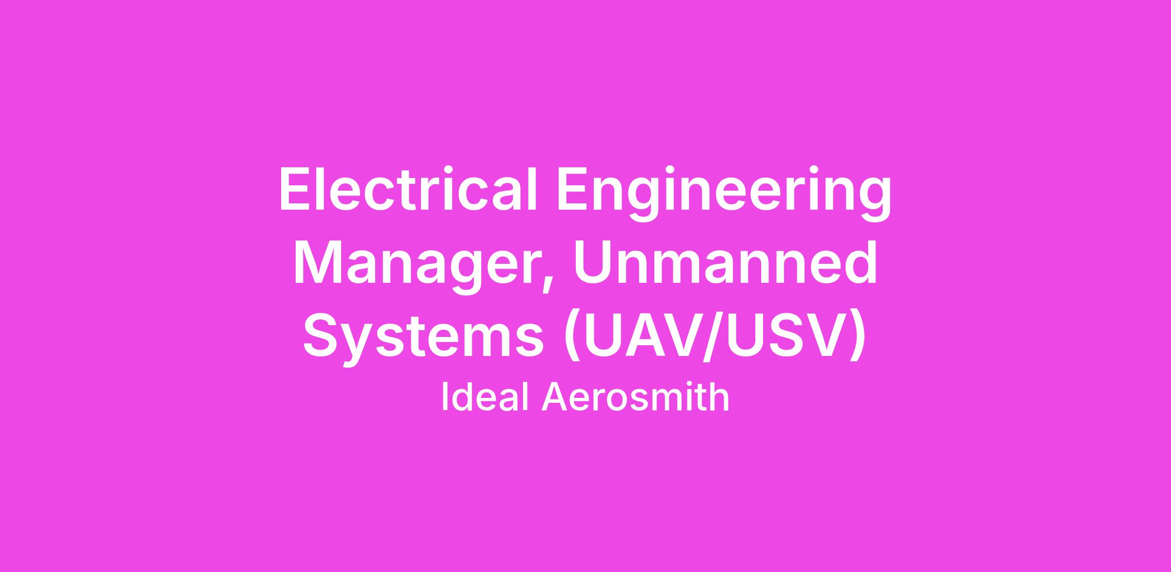 Electrical Engineering Manager, Unmanned Systems (UAV/USV)
