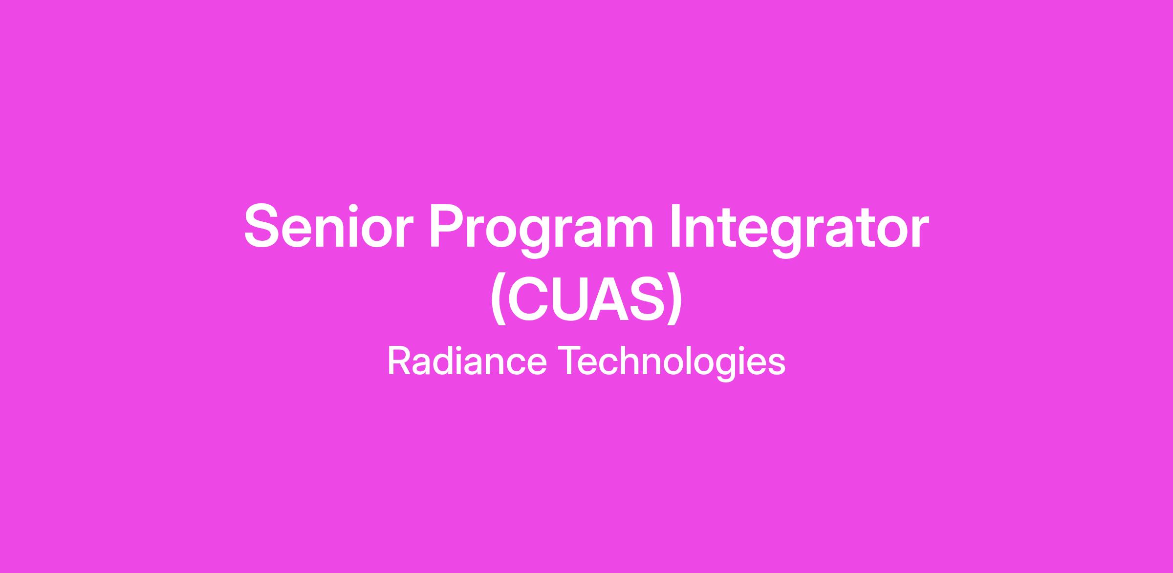 Radiance Technologies is seeking a Senior Program Integrator (Counter Unmanned Aircraft Systems (C-UAS) to support a critical Department of War (DoW) program focused on C-UAS. This position will play a key role in multi-functional coordination among functional area considerations including engineering, logistics, business, and contracts to support effective program management and ensure successful delivery of weapon system capabilities within a larger system-of-systems architecture. This dynamic position requires a strategic thinker with exceptional organizational skills, critical analysis abilities, and a proven track record of credibility and support.