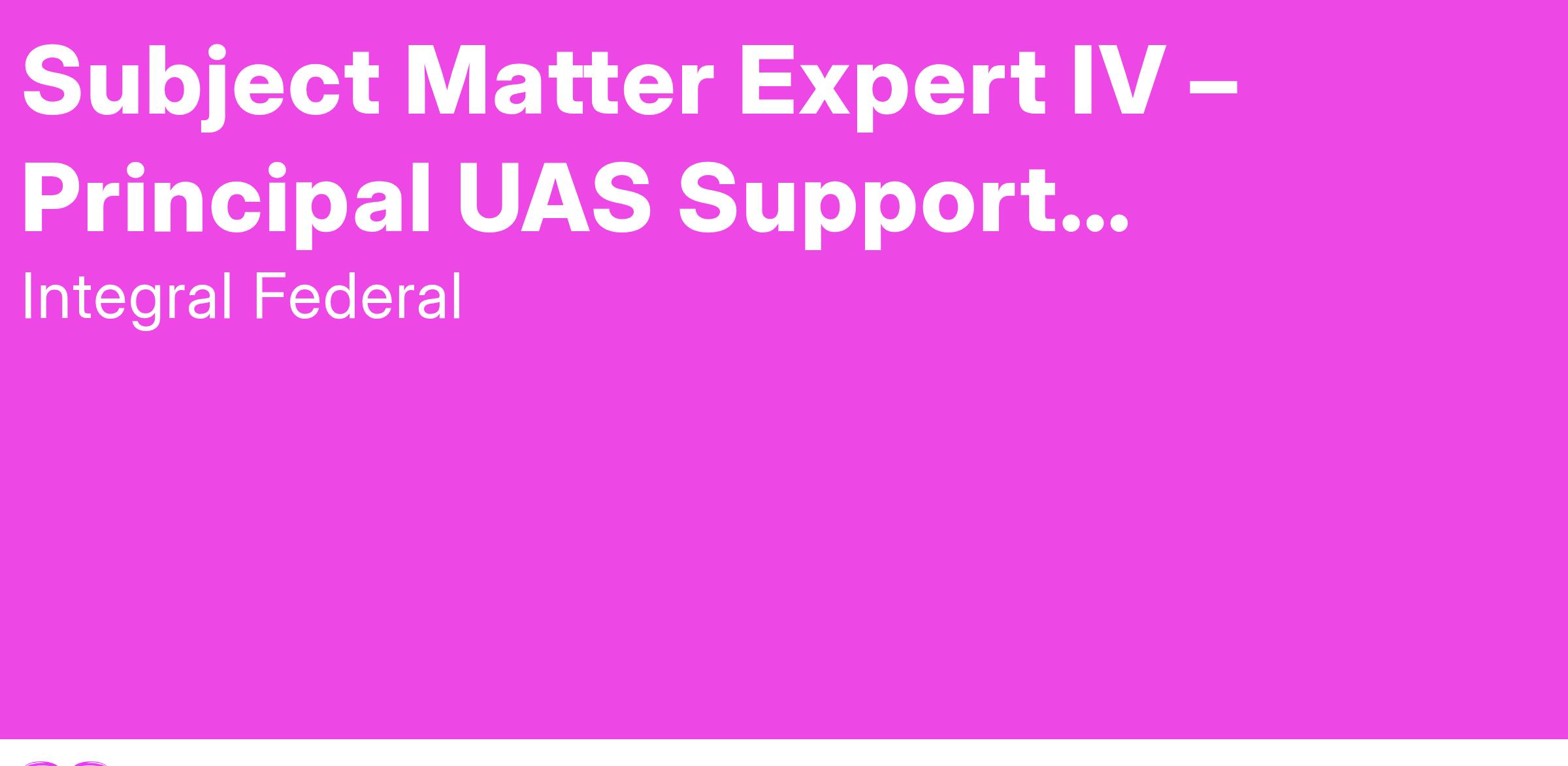Subject Matter Expert IV – Principal UAS Support Equipment and Product Support Management Advisor